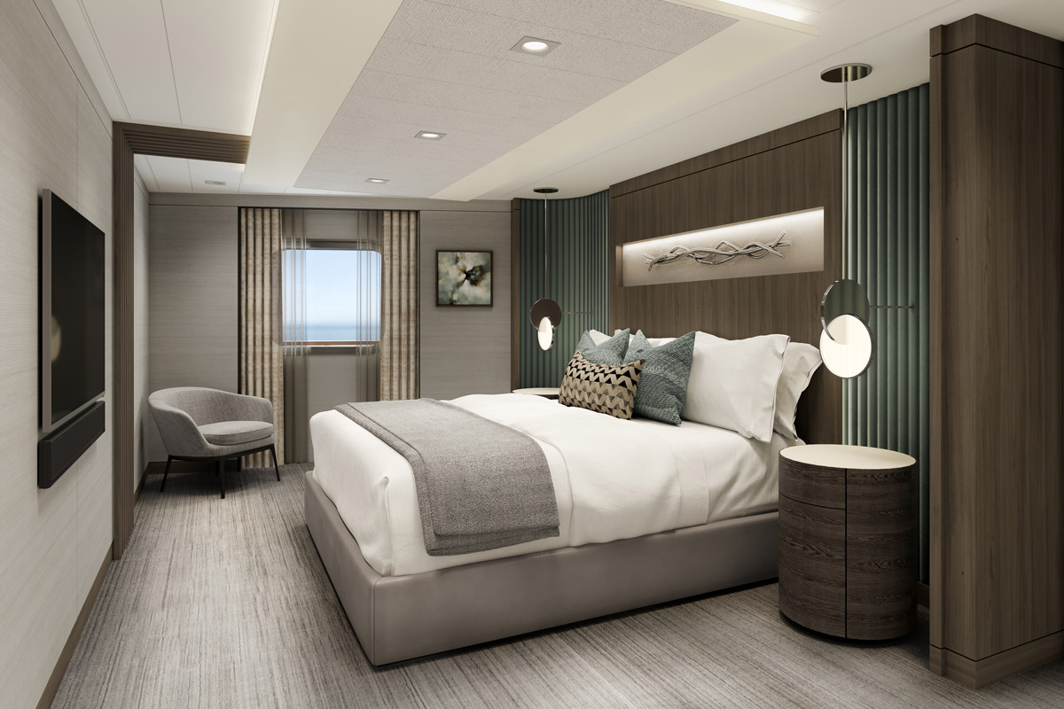 Kabina Vista Suite na nowym statku statku Oceania Cruises.